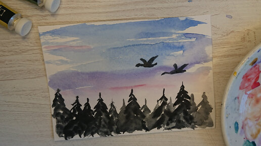 Простейший пейзаж акварелью за 5 минут