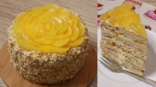 Вкусный домашний торт | Молочная девочка с персиками. Торт без крем чиза.