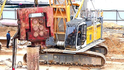 Строительное Оборудование. Вибропогружатель. Забивание Свай Вибропогружателем. Строительная Техника
