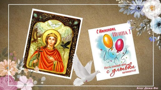 С Днём Ангела, Ирина! Красивая поздравительная открытка с Днём Ангела Ирины! Именины у Ирины!