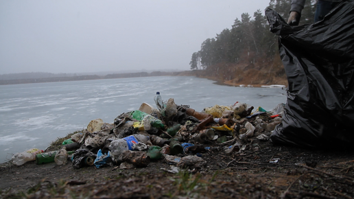 На озере собрал вторсырье, которое отставили отдыхающие...