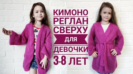 МК// кардиган// кимоно для девочки// реглан сверху// 3-8 лет