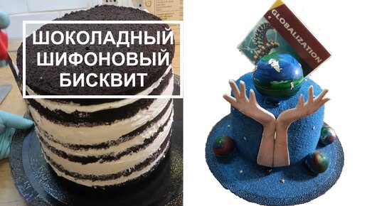 Шоколадный шифоновый бисквит. Крем Чиз с карамельно ванильным топпингом. Оформление торта.