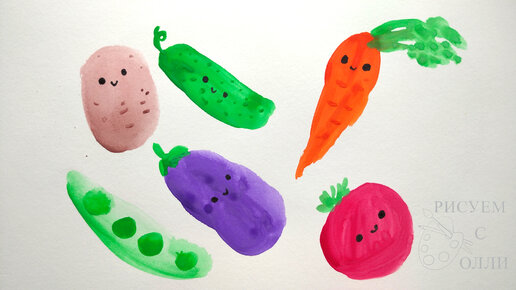 Рисуем весёлые овощи гуашью