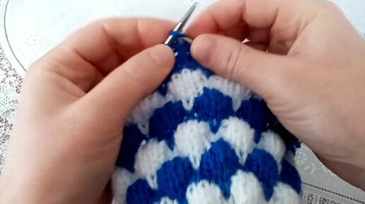 Вязание двухцветного узора на круговых спицах.