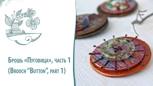 Брошь «Пуговица», часть 1 (всего понемногу: полимерная глина, PanPastel, акриловые краски, медь, растения в смоле)