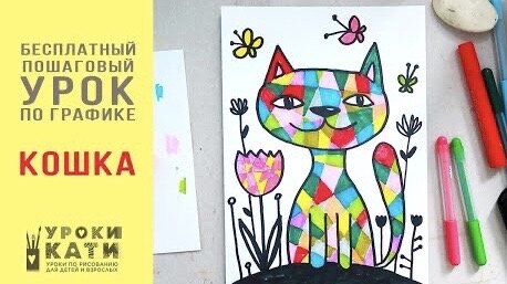 Как нарисовать кошку фломастерами, пошаговый урок для детей от 6 лет