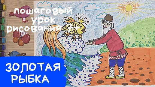 Золотая рыбка рисунок. Рисунок к сказке золотая рыбка. Рисунок сказка о рыбаке и рыбке Пушкин. Карандаши и краски.