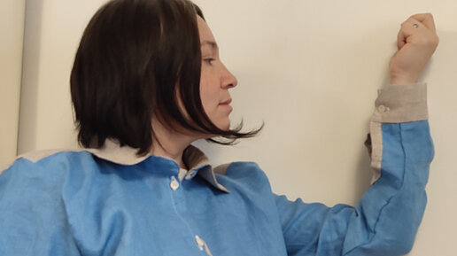 Сшила рубашку из синего льна