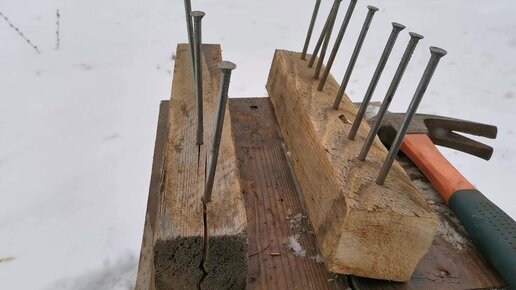 Гвозди, забитые поперёк и вдоль годовых колец.