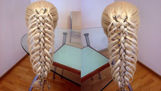 Ажурная коса из сдвоенных четырех прядок Заплести самой