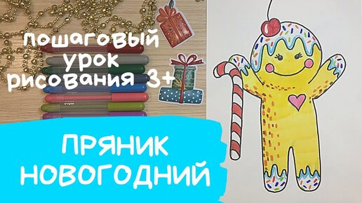 Пряник рисунок. Пряник рисунок для детей. Новогодний пряник рисунок. Имбирное печенье легкий рисунок. Карандаши и краски.