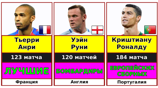 ТОП-33: Лучшие бомбардиры европейских сборных по футболу.