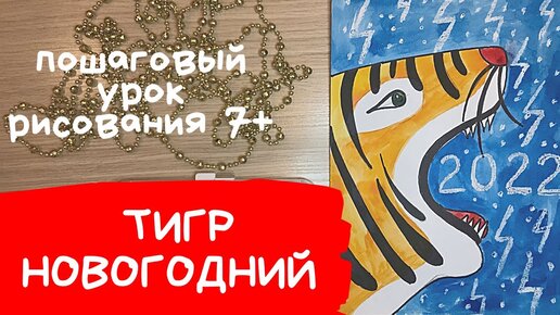 Тигр рисунок Как нарисовать тигра Как легко нарисовать тигра Год тигра тигр рисунок для детей. Карандаши и краски.