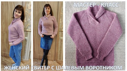 Женский свитер спицами регланом сверху с шалевым воротником. Мастер - класс