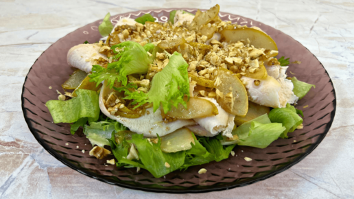 Салат с копченой курицей и грушей | Простой и вкусный рецепт необычного салата.