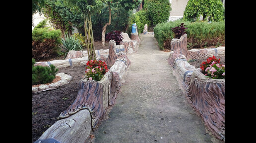 Бордюры во дворе. из пластмассовых ящиков. оформление усадьбы. мастер Александр г Киев