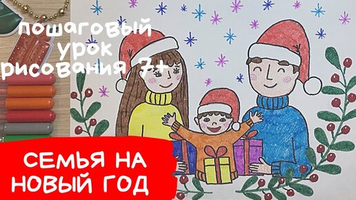 Рисунок моя семья. Рисунок новогодняя семья. Моя семья и новогодняя сказка рисунок. Мама папа я. Карандаши и краски.
