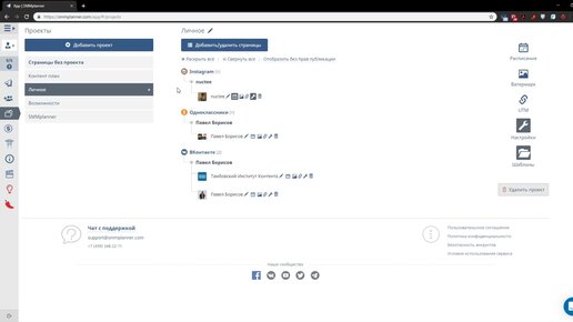 SMMplanner - добавляем один аккаунт в несколько проектов