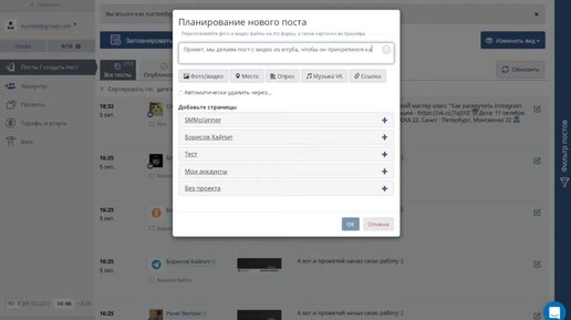 Постинг видео из YouTube в VK