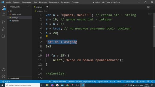 2 занятие по JS центра Успех (переменные и их типы + условные операторы)