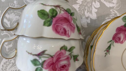 Meissen с розовыми розами. Кофейные и чайные пары.