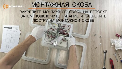 Сборка квадратной современной потолочной светодиодной люстры с пультом LOOK RGB 120W 4S-556х556х80 корпус Белый от Estares