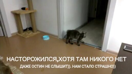 Котенок что то увидел и испугался.... Приучаю котенка к воде))