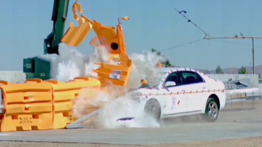 Испытания краш- тест дорожного буфера дорожного барьера.