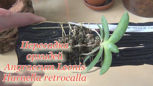 Пересадка орхидей. Ангрекум Леонис и Хараелла Ретрокалла / Angraecum Leonis, Haraella Retrocalla. Пробковый горшок и блок.