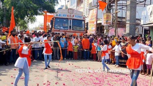 Уличный танец девочек с шестами в Хайдарабаде (Индия)
