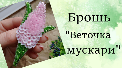 Брошь из бисера и бусин своими руками "Веточка мускари"