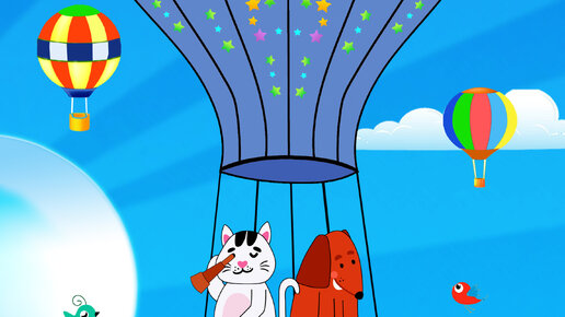 Милые картинки для детей. Декор детской. Постер «Полёт на воздушном шаре» второй постер из коллекции «Мишаня и Тимурчик».