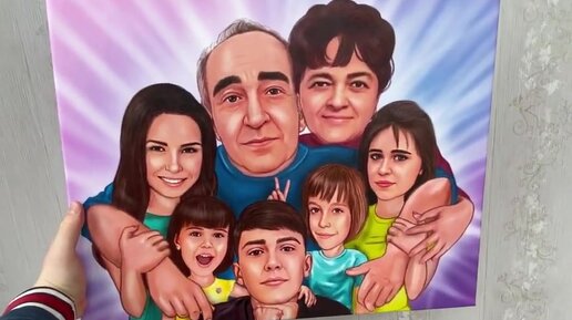 Семейная картина-шарж на холсте. Подарок родителям. Доставка по России