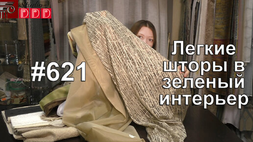 621. Легкие шторы для кухни с зеленым интерьером
