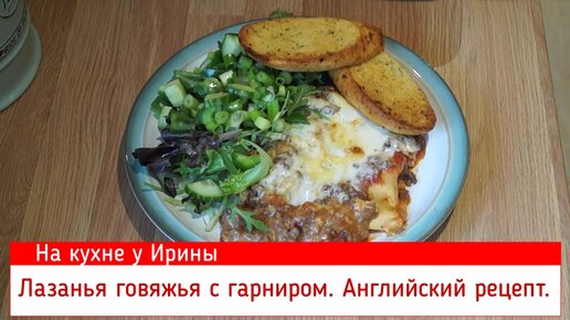 Английский вариант рецепта лазаньи из говядины с зеленым салатом и чесночным хлебом. От моего мужа.