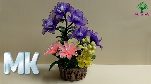Цветы из капрона Разноцветная яркая композиция своими руками Легко и просто\Master diy