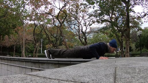 Делаю зарядку в центральном парке Гонконга