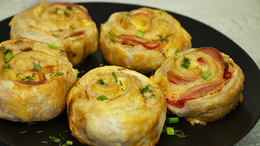 Быстрые слойки с ветчиной и сыром из готового слоеного теста