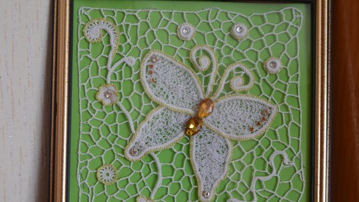 Картина-панно "Бабочка желаний" в технике ирландское кружево