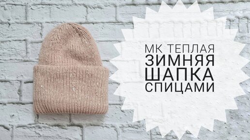 Зимняя шапка спицами, двойная с отворотом