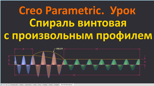 PTC Creo. Урок. Спираль винтовая с произвольным профилем.
