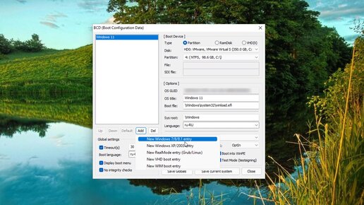 Как добавить при загрузке выбор операционной системы UEFI