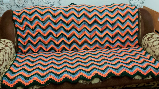 МК плед крючком Узор для пледа Как связать плед зигзаг крючком