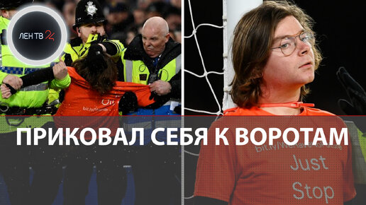 Приковал себя к воротам на матче Эвертон — Ньюкасл | Активист прервал матч Английской Премьер-лиги