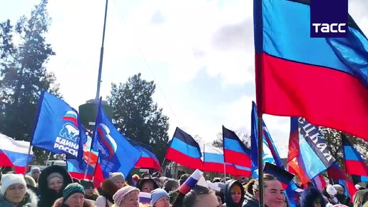 Митинг в поддержку РФ и в честь годовщины воссоединения Крыма с Россией в поселке Гранитное в ДНР
