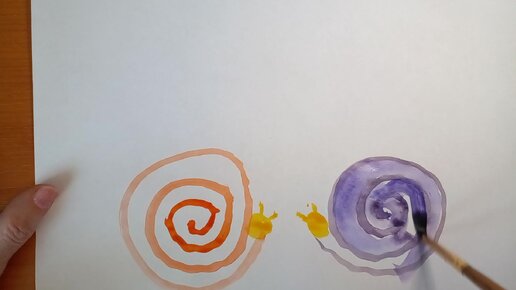 Рисуем с детьми улиток в траве пальчиками. Акварель.