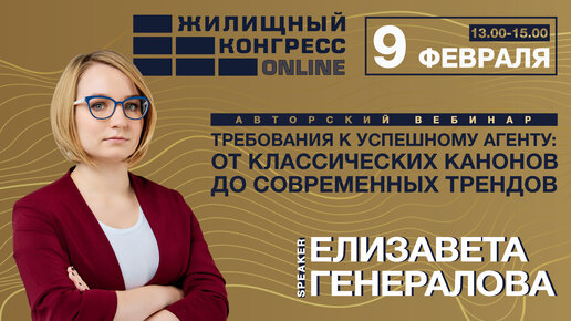 Вебинар Елизаветы Генераловой «Требования к успешному агенту: от классических канонов до современных трендов»