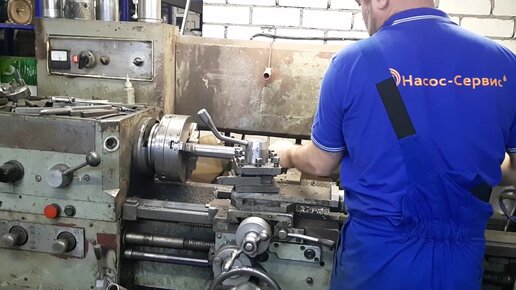 Ремонт вала насоса на токарном станке.