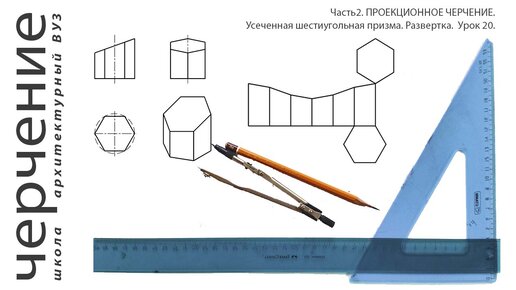 Усеченная шестиугольная призма. Развертка. Урок 20. (ПРОЕКЦИОННОЕ ЧЕРЧЕНИЕ)